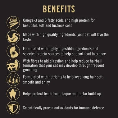 - แหล่งโปรตีนที่คัดสรรโดยเฉพาะ – ย่อยง่ายและเหมาะสำหรับแมวที่แพ้อาหาร
