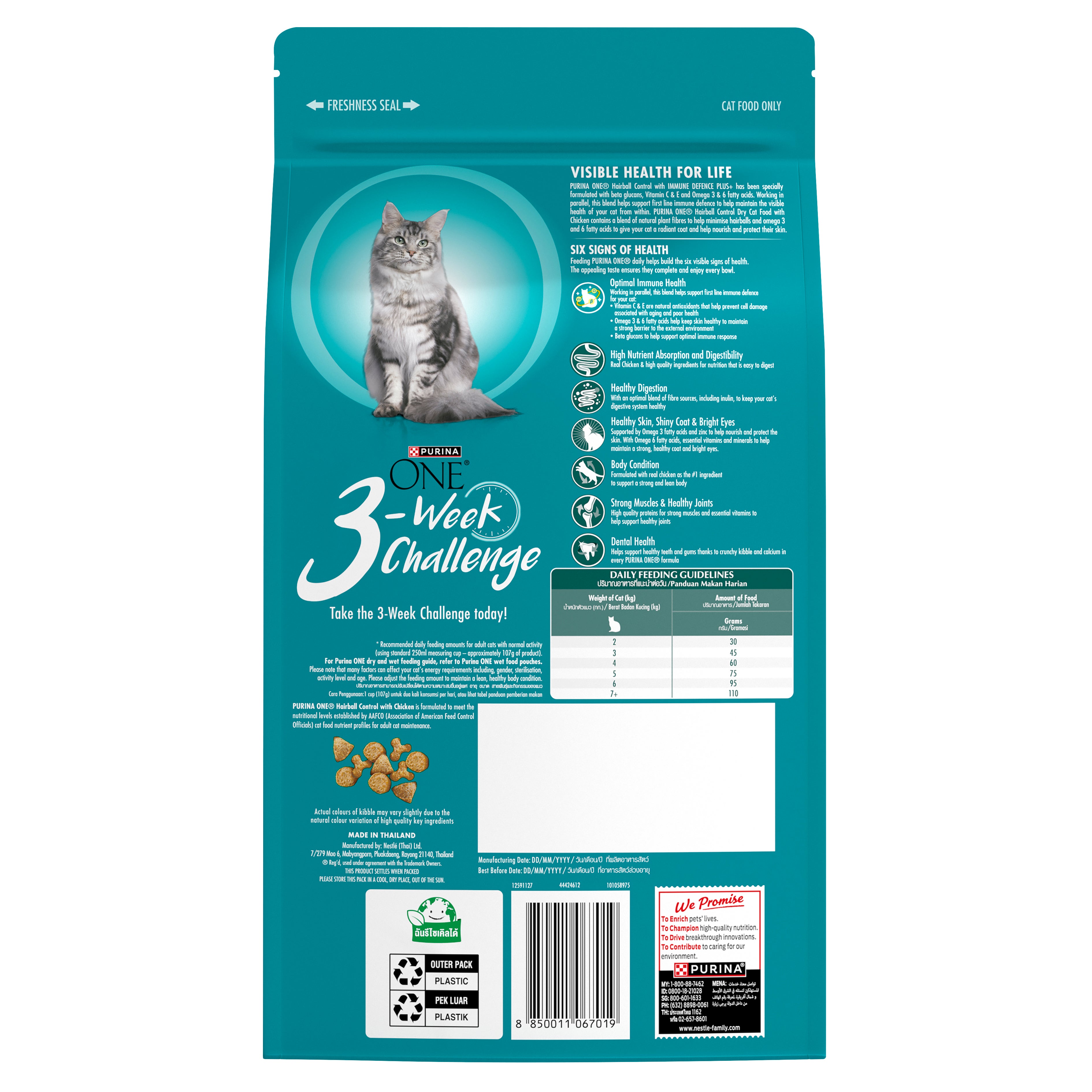 อาหารแมว เพียวริน่า วัน สูตรแมวโต สูตรควบคุม ก้อนขน